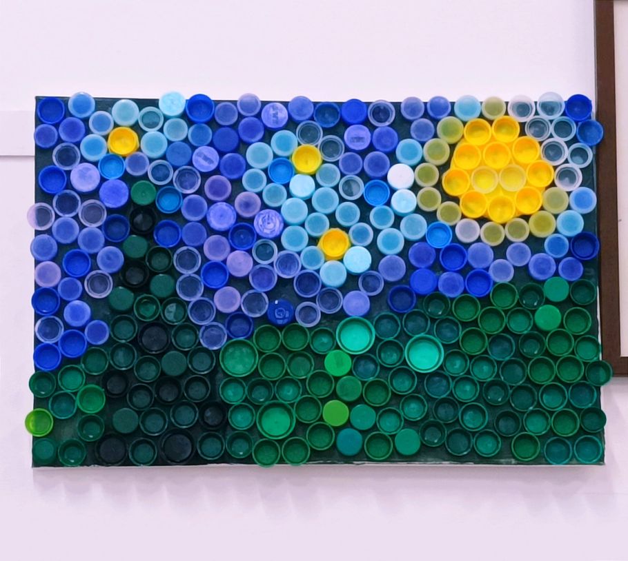 Rimasti affascinati dalla mostra dello scorso anno, i bambini della 2° Primaria hanno voluto realizzare la loro "Notte stellata" utilizzando i tappi delle bottiglie