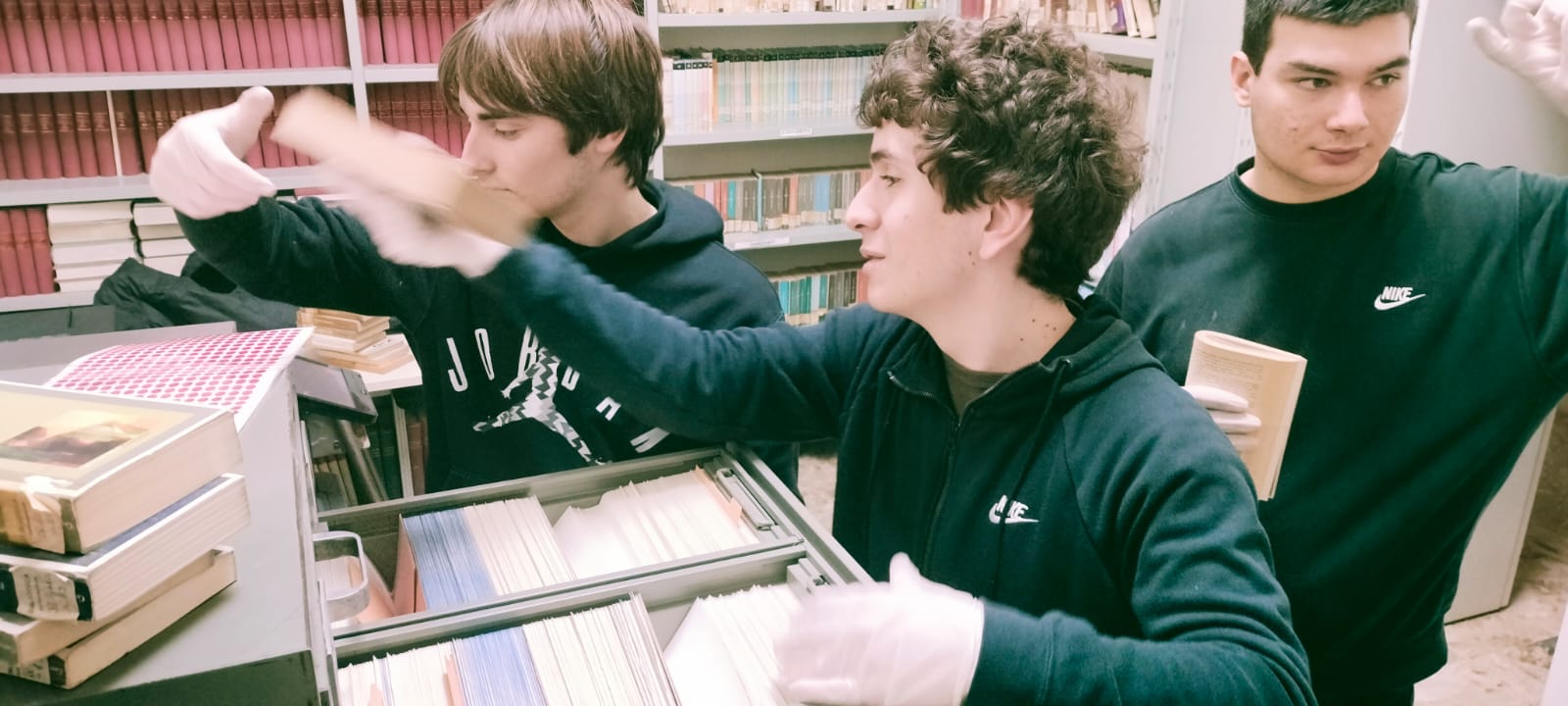 L'attività coinvolge alcuni studenti del triennio ed è pensata in più fasi su più anni. Ora lavoriamo per verificare il catalogo esistente e le condizioni materiali dei libri.