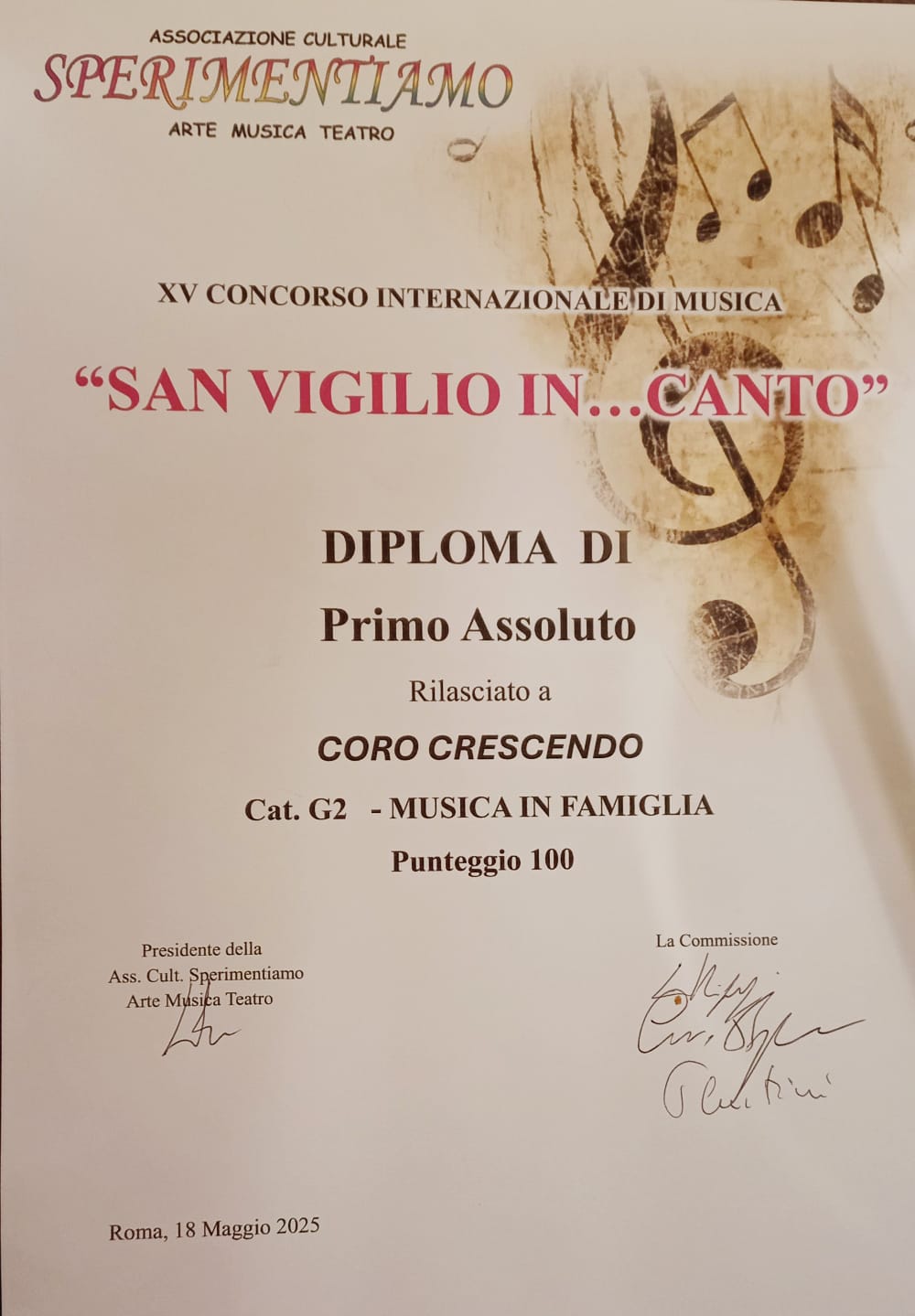*PRIMO PREMIO* con 97/100 al Coro Crescendo & Cor Unum nella cat. E2 / Cori Scolastici;